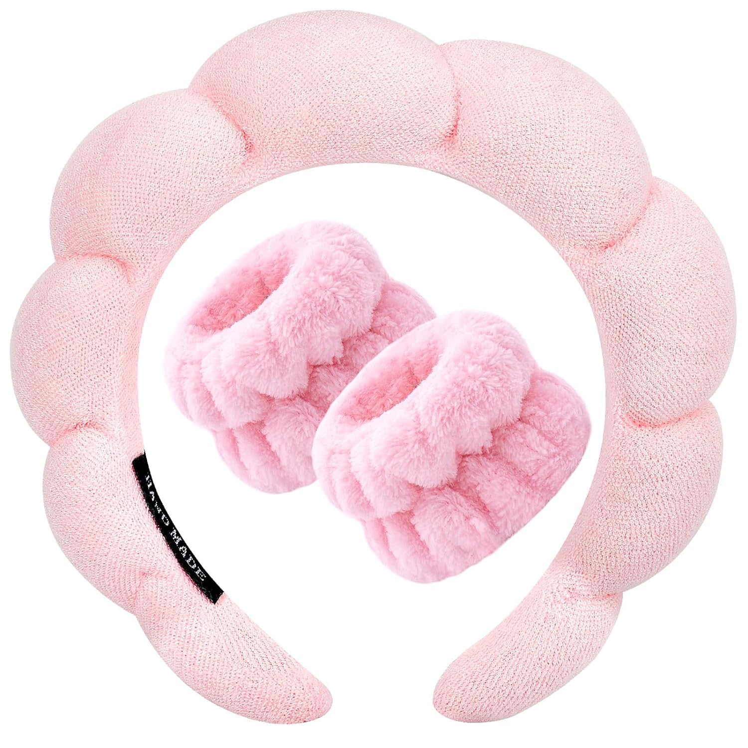 CORSULA Women 1Pcs Facial Spa Headband 2Pcs Wristband Combo Set, Pink Makeup Headband And Wrist Washband Set For Face Washing, Skincare, Shower, Makeup Removal